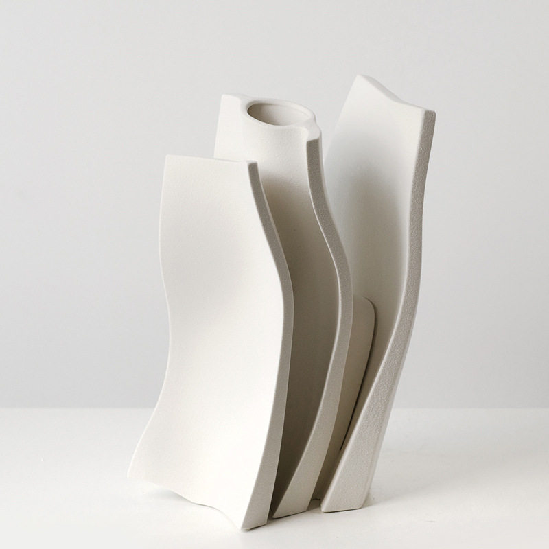 简约现代陶瓷花瓶家居样板间售楼处白色三条片插花器玄关饰品摆件