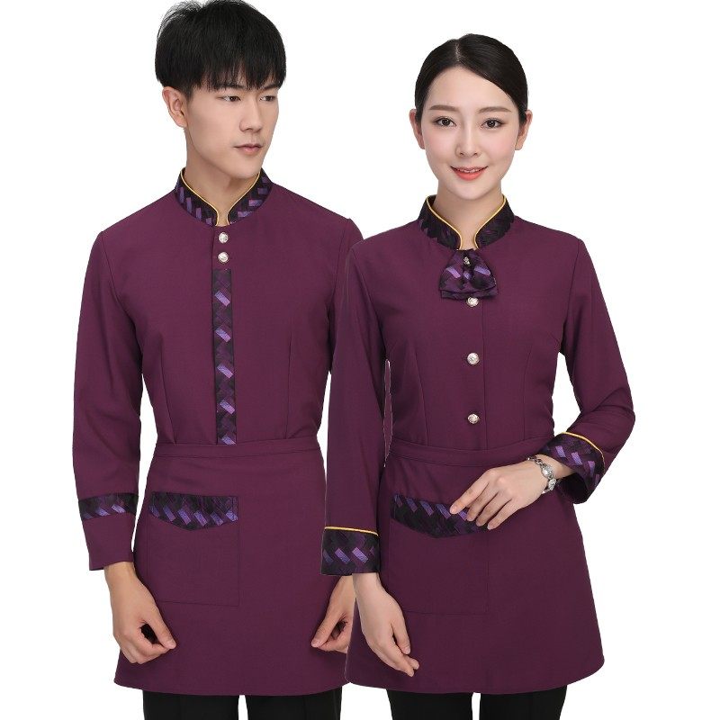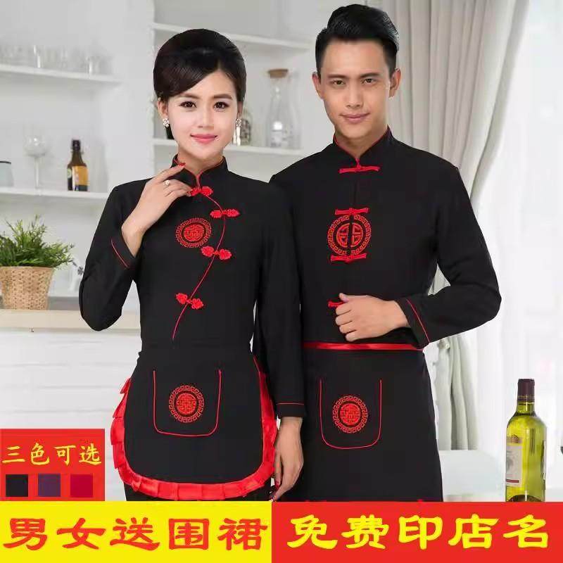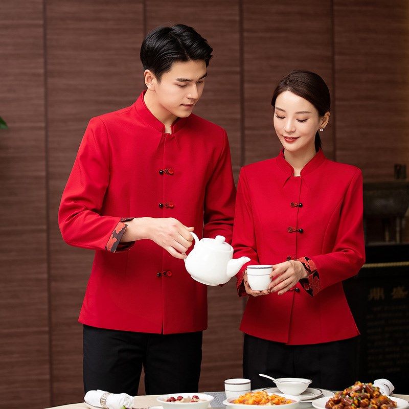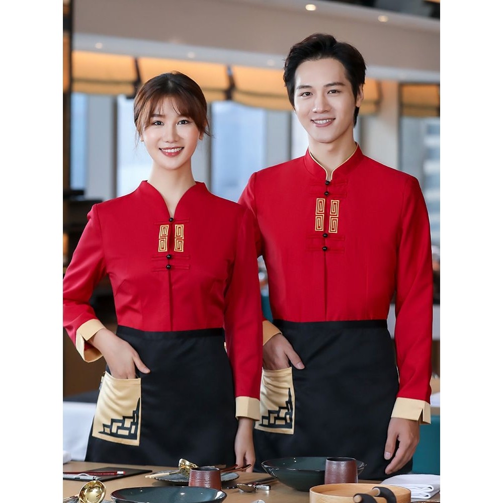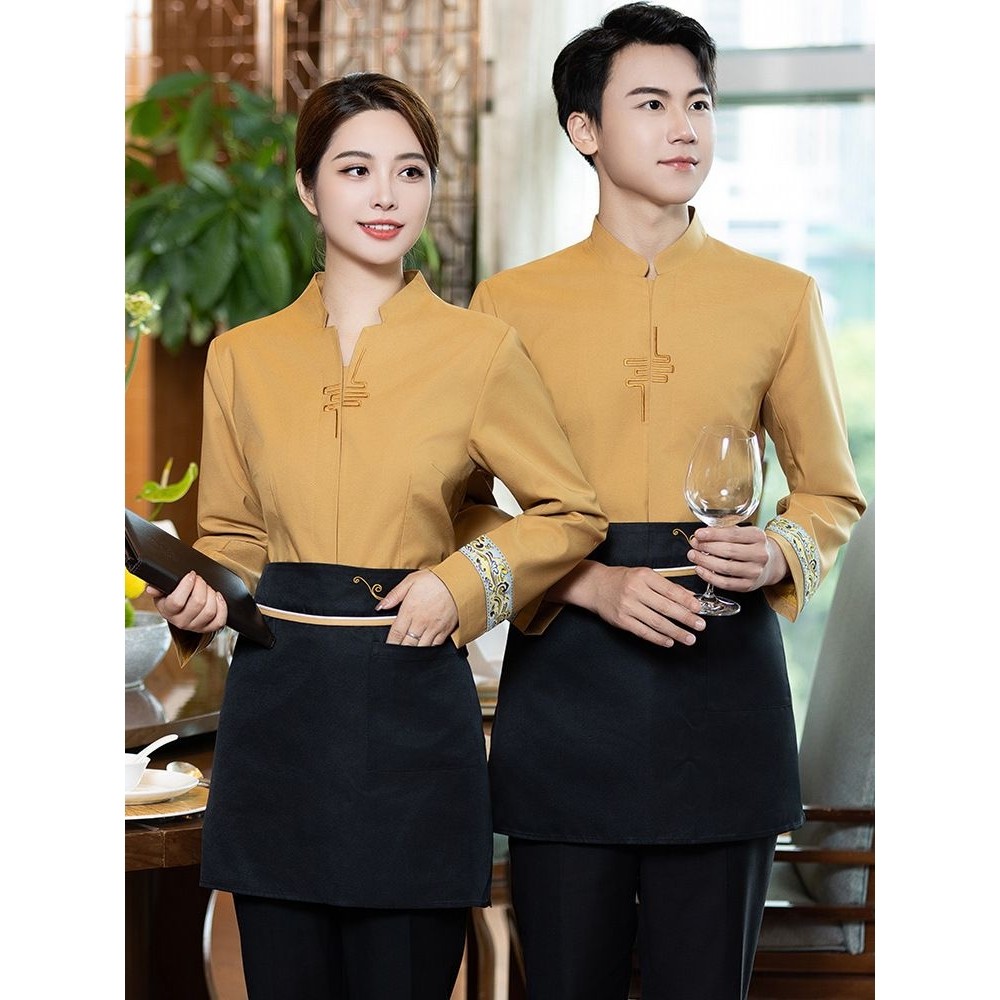 中式酒店餐饮服务员工作服长袖女男饭店火锅酒楼宴会餐厅工装秋冬