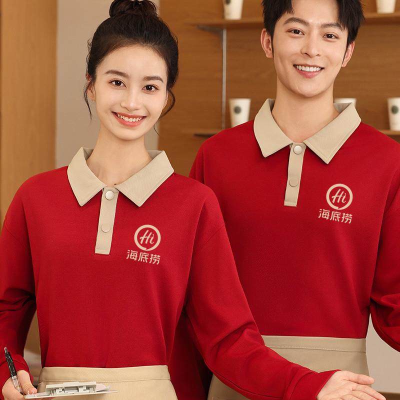 高档餐饮服务员工作服长袖秋工餐厅装火冬锅饭店加加厚外套卫衣绒