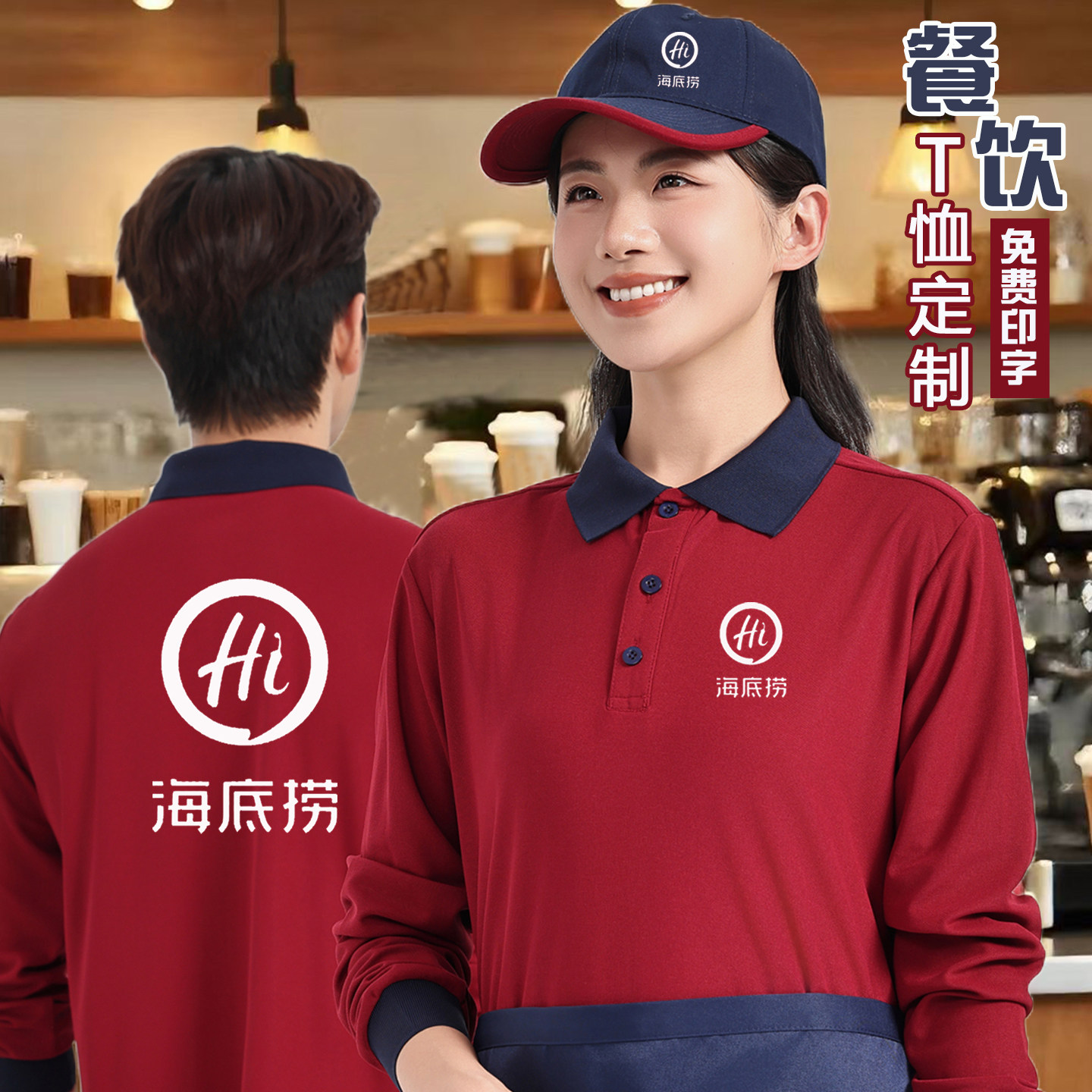 餐饮服务员工作服长袖T恤定制饭店火锅奶茶店工装超市咖啡厅工衣