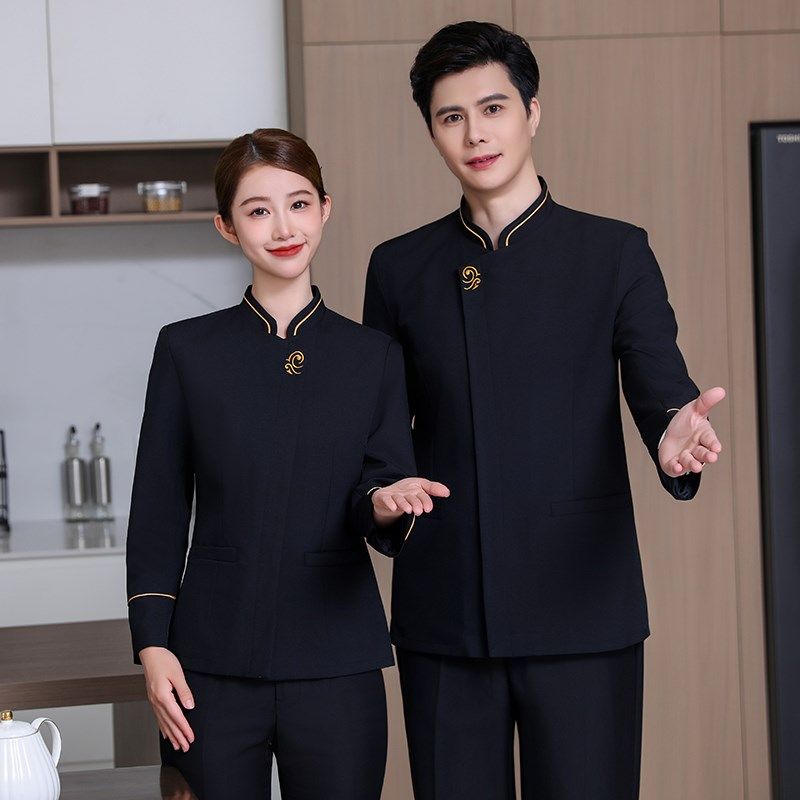 京橙餐饮服务员工作服高端饭店酒店工作服秋冬新中式长袖中国风女