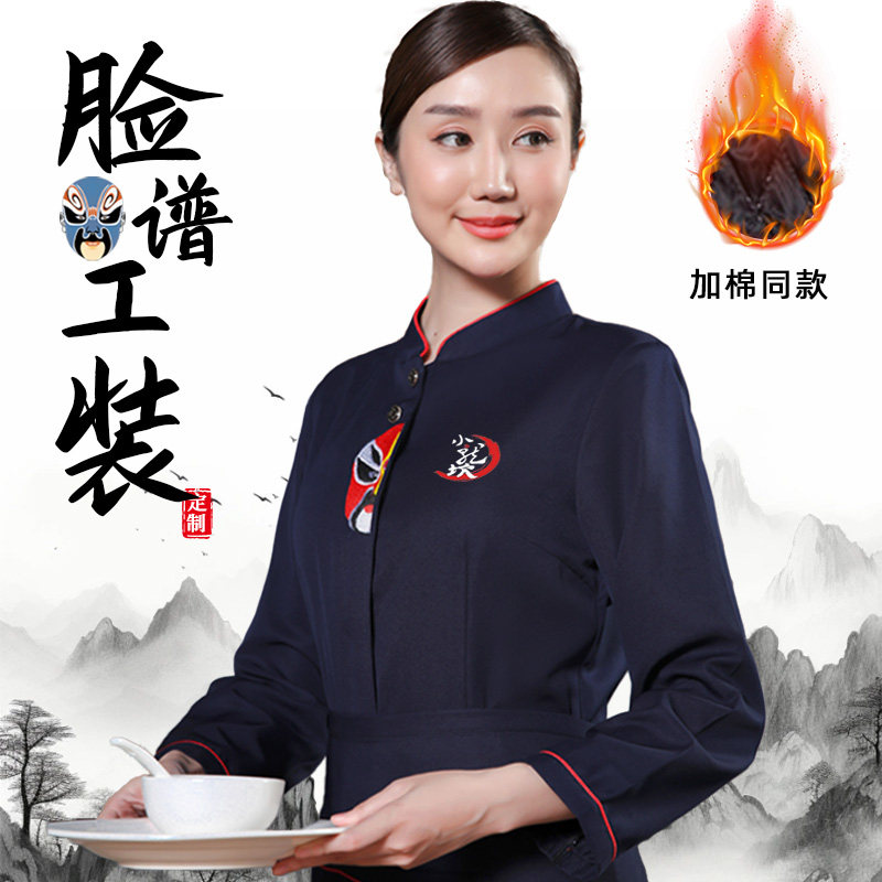 脸谱餐饮服务员工作服长袖女秋冬装中式餐厅酒店火锅饭店员工服装