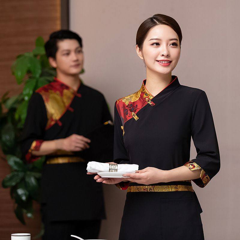 高档酒店餐饮服务员工作服长袖中式餐厅酒楼火锅饭店茶楼秋冬套装