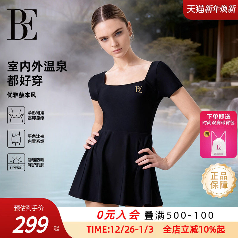 BE范德安2025新款爆款连体裙式平角温泉度假泳衣女士高级防晒法式