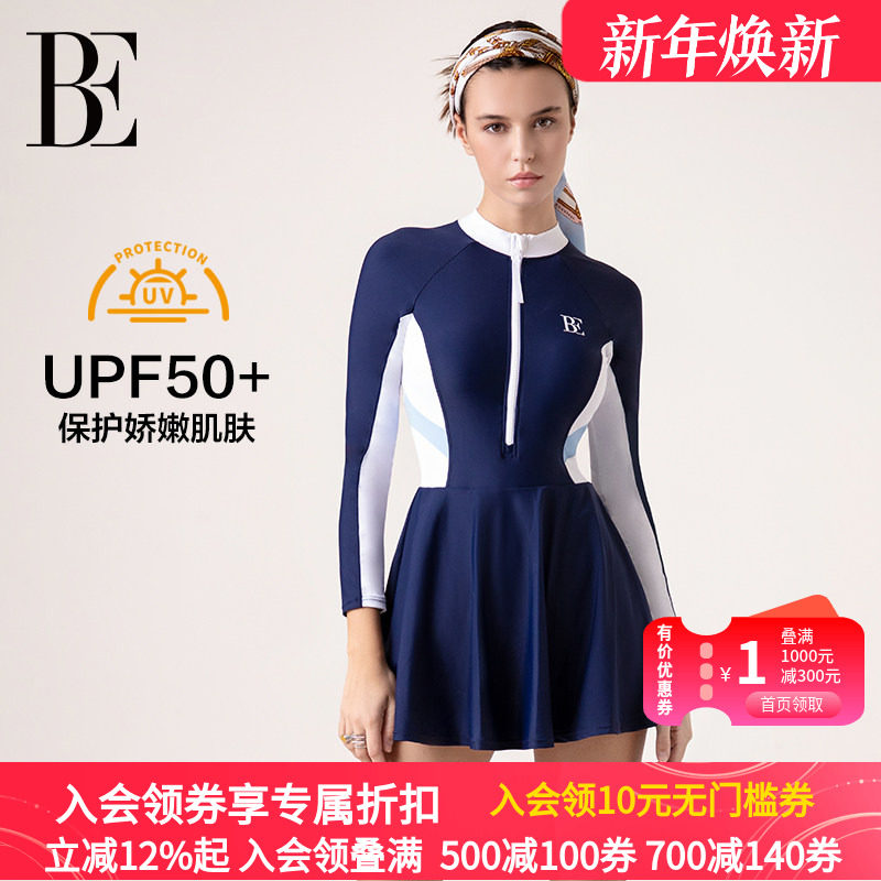 BE范德安MIX系列2025新品裙式连体平角泳衣长袖科技塑身显瘦度假
