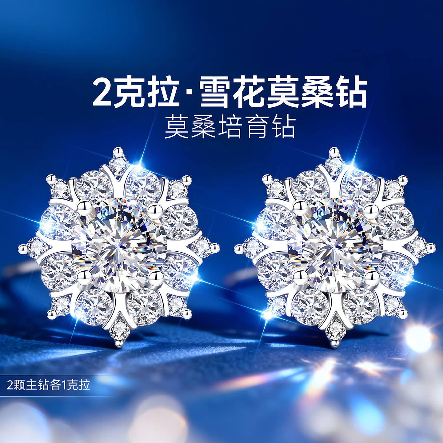 999纯银999足银莫桑培育钻满钻爆闪雪花耳钉女士女耳饰耳环养耳洞