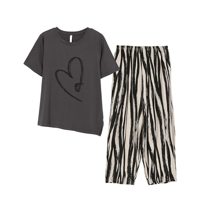 2025夏季纯棉睡衣女薄款短袖长裤三件套宽松大码可爱风爱心家居服