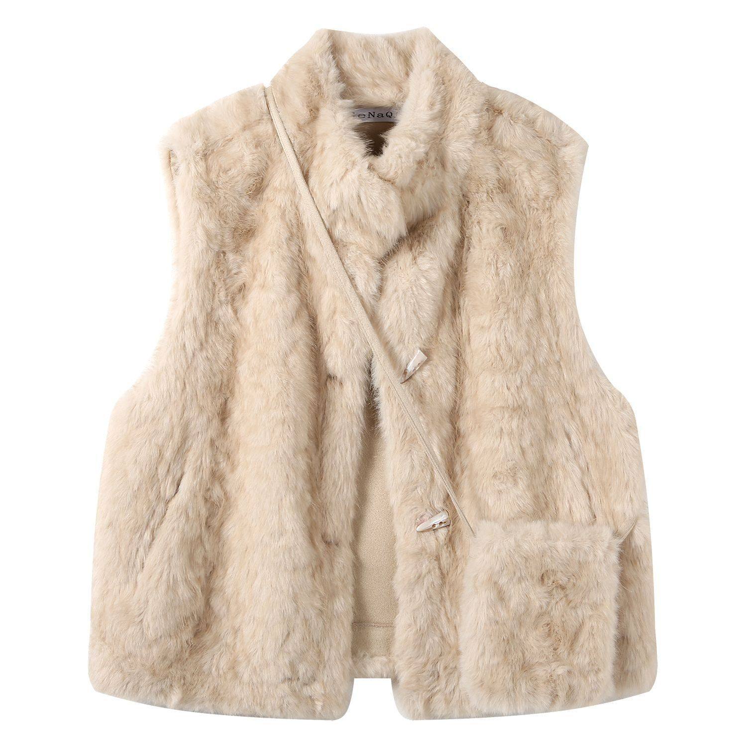 Halonini 卷卷羊羔羔 乖乖韩系小立领小个子短款仿羊羔毛无袖马甲