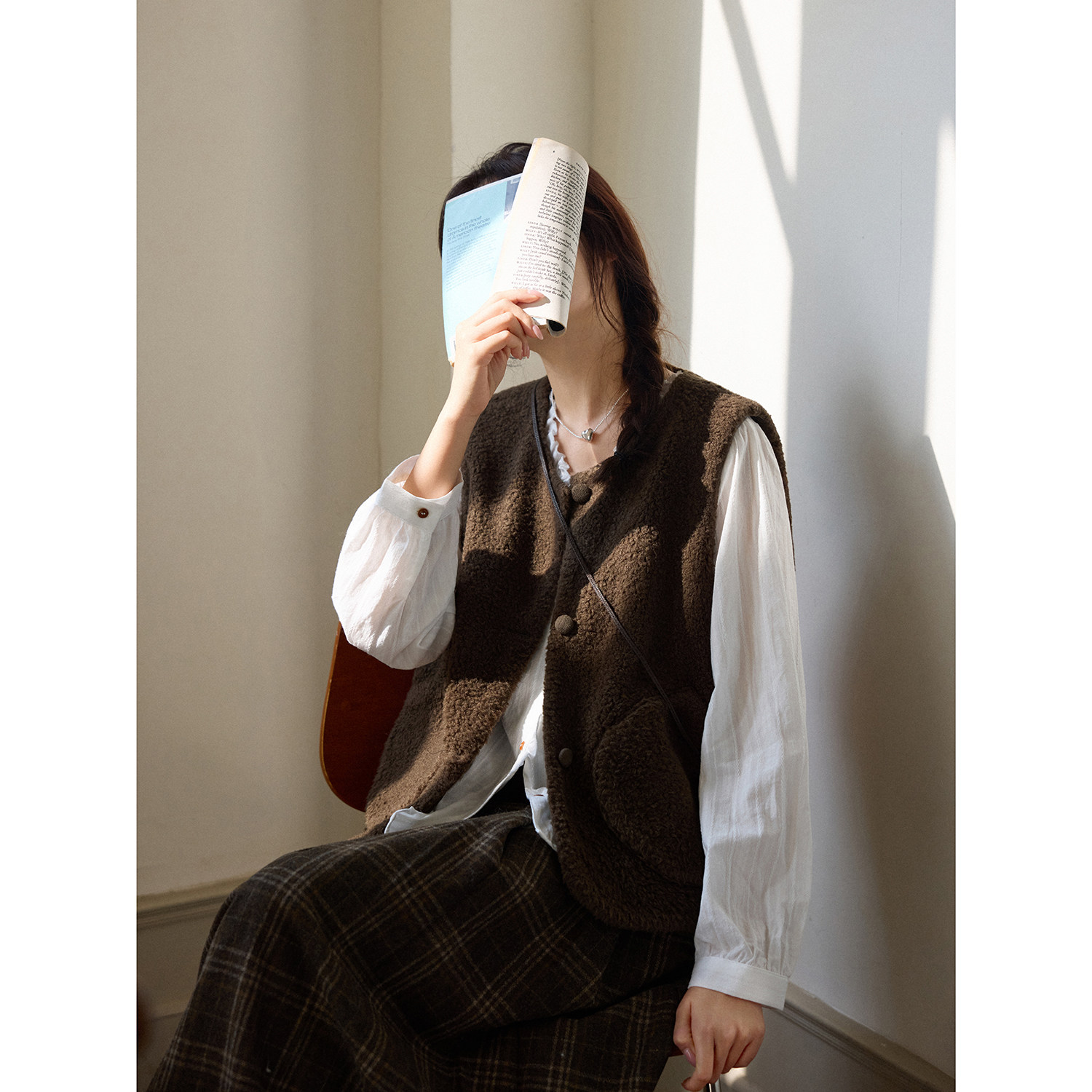 Even Vintage | 100%羊毛羊羔毛 短款宽松复古牛角扣马甲外套秋冬