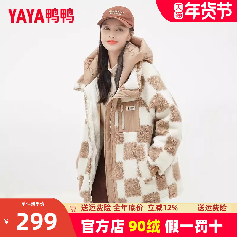 dfvc时尚短款连帽格子毛呢外套女2025年冬季新款宽松仿羊羔毛外套