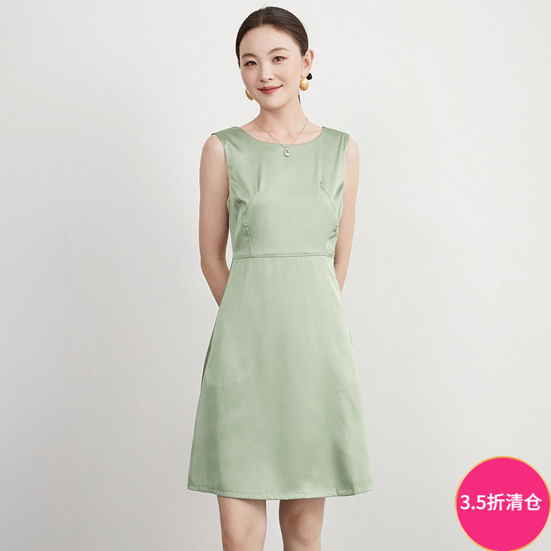 Outlets专柜撤柜正品 QY夏装2025新款含桑蚕丝中裙无袖高腰连衣裙