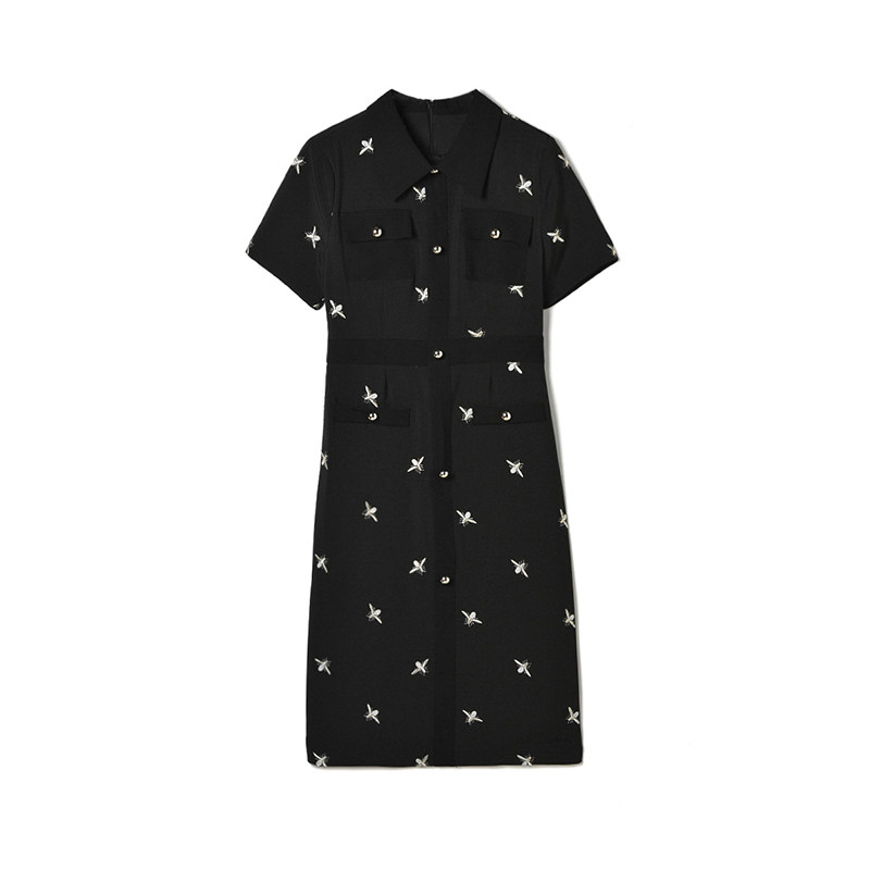品牌折扣花式短袖连衣裙女修身显瘦高腰优雅百搭包臀裙旗袍裙中裙