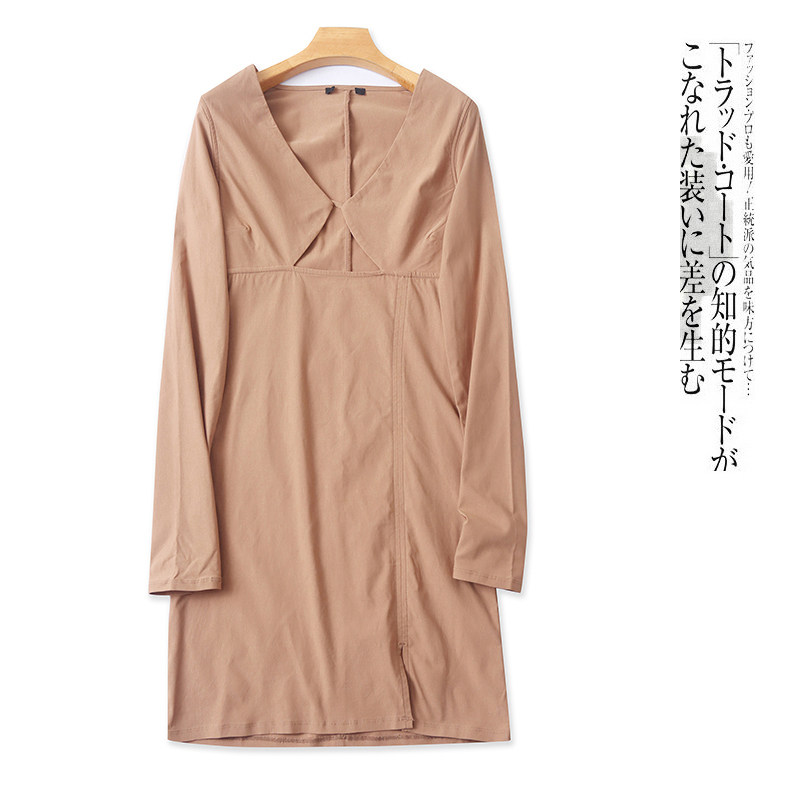 lkbennett法式连衣裙女新款春季长袖v领微弹高腰a字中裙气质