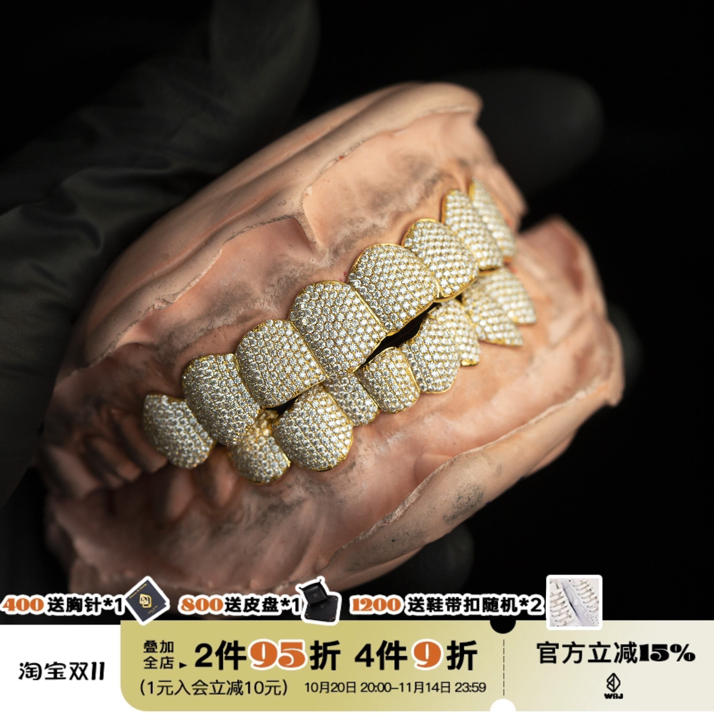 WBJ定制珠宝定制欣赏牙套金牙套钻石牙套grillz各种材质K金+钻石