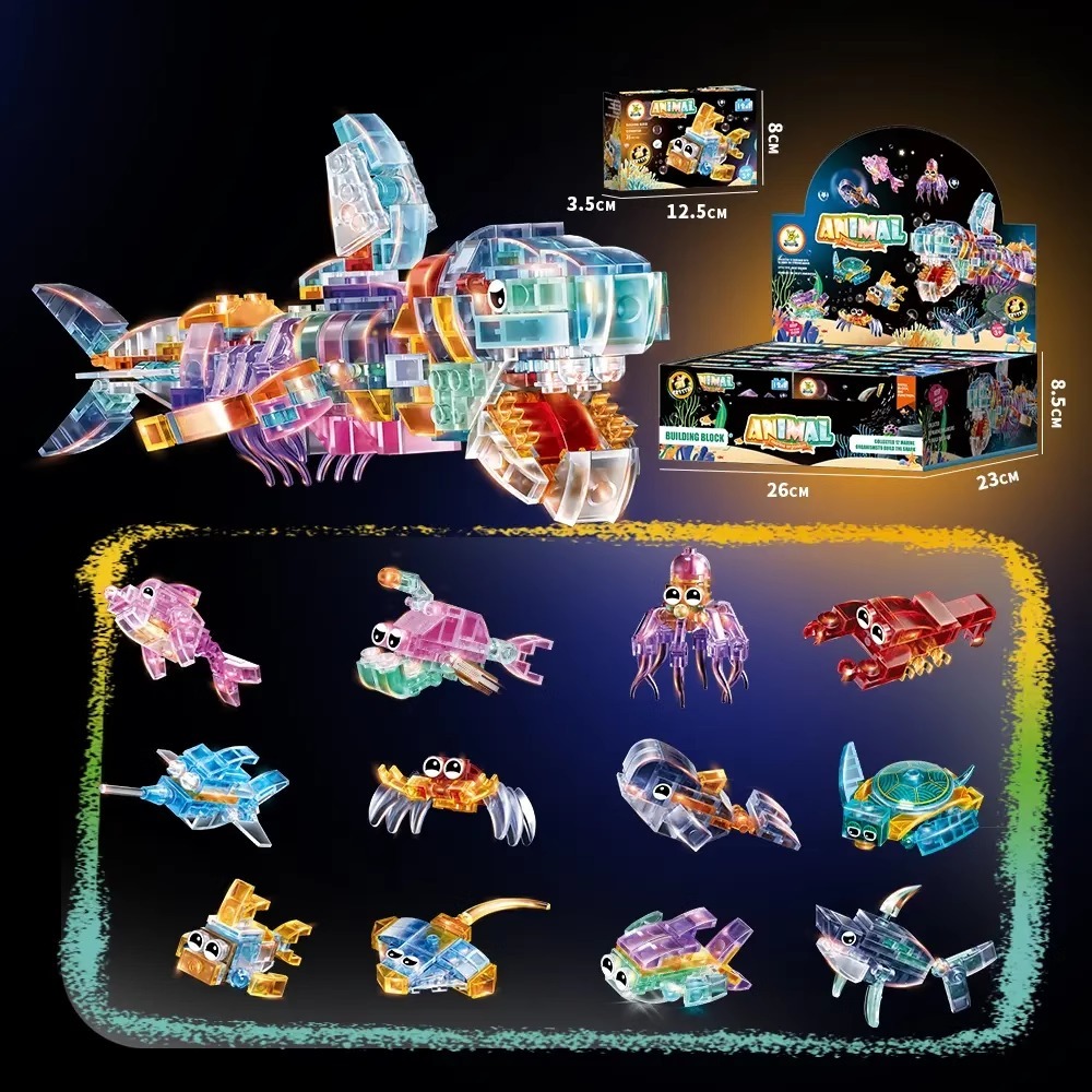 简单透明海洋底动生物世界积木拼装3-14岁儿童益智玩具6男生孩子0