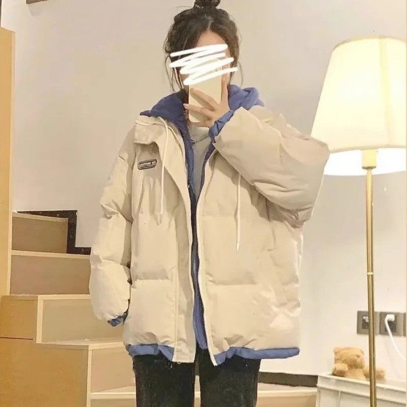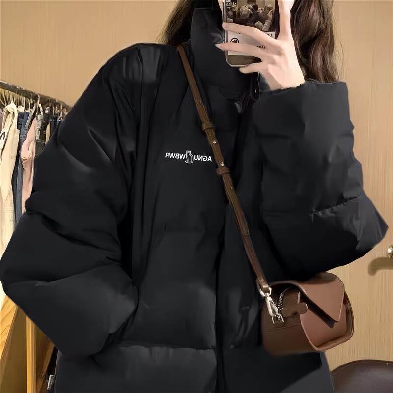 潮牌中长款羽绒棉服宽松加厚初高中学生翻领面包服东北棉袄外套女