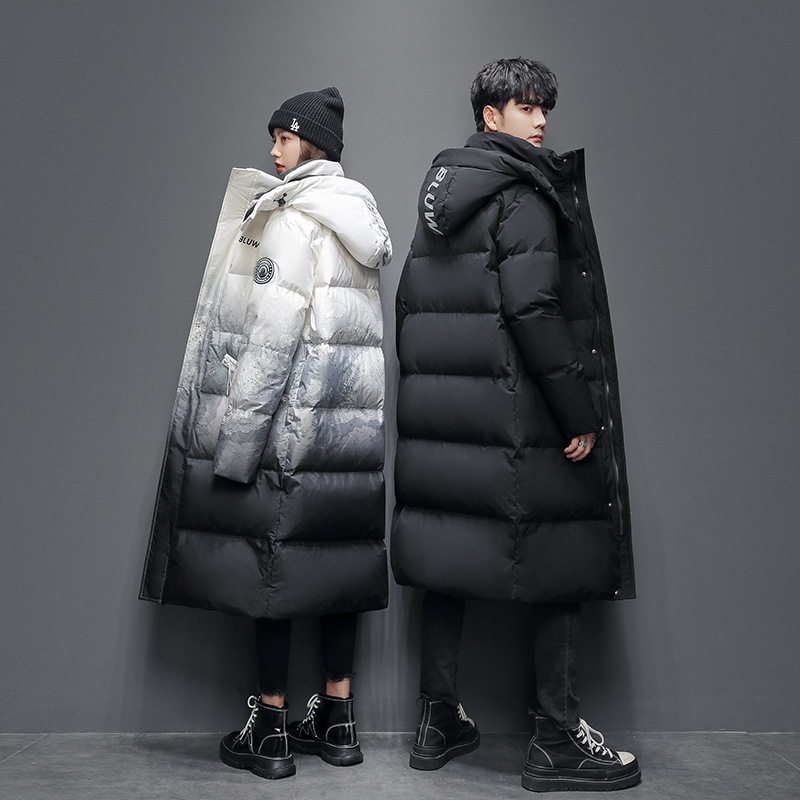 中长款羽绒服男冬季过膝高中学生衣服潮流帅气90白鸭绒渐变色外套
