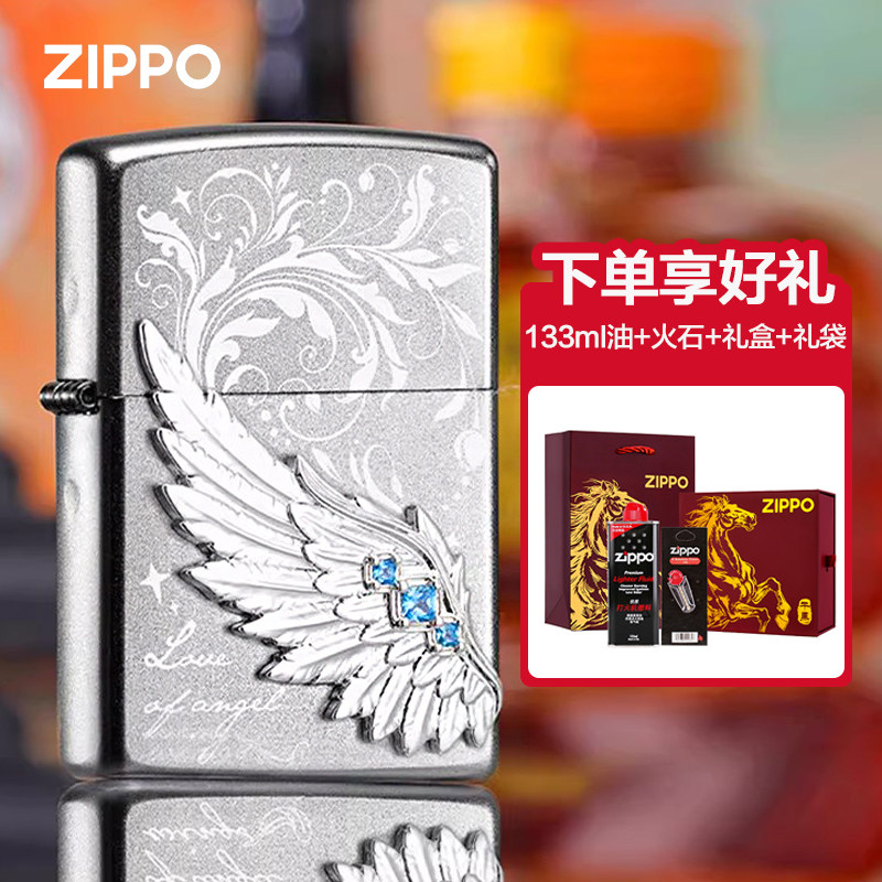 zippo打火机正品 热恋之翼镶钻贴章翅膀飞的更高煤油防风春节礼物