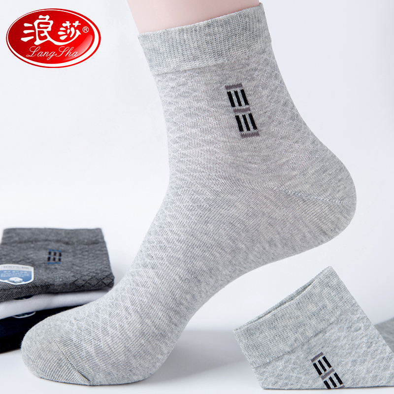 浪莎夏天袜子鞋男士纯棉防臭透气中筒袜商务春秋棉袜夏季薄款男袜