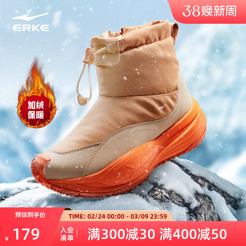 鸿星尔克防滑雪地靴高帮棉鞋女鞋防滑冬季新款保暖加绒加厚运动鞋