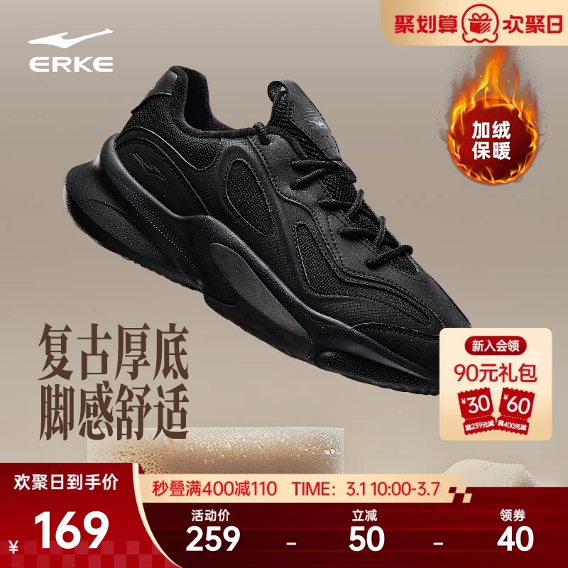 鸿星尔克男鞋2026新年款冬季加绒加厚保暖青少年学生运动老爹鞋子