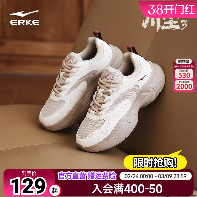 鸿星尔克川尘3女鞋冬季女款运动鞋软底复古老爹鞋厚底增高休闲鞋