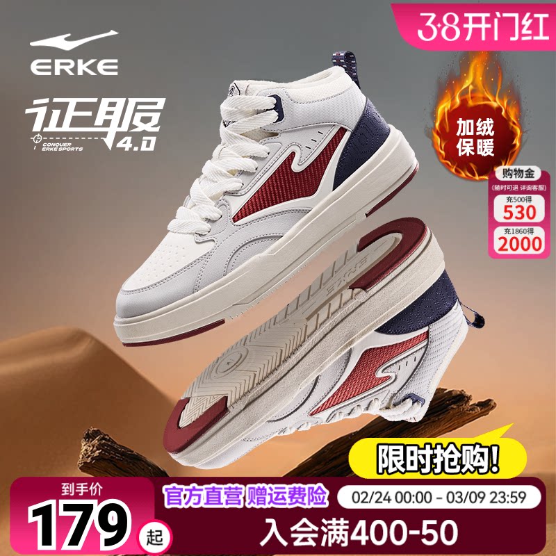 唐宫夜苑4鸿星尔克板鞋秋冬季高帮鞋子新款男鞋厚底休闲鞋运动鞋