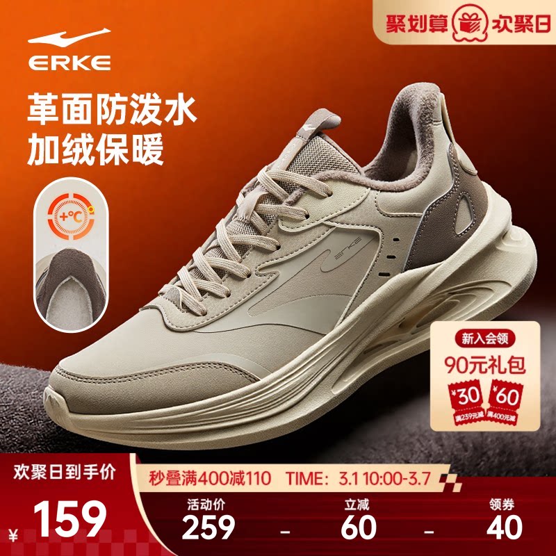 鸿星尔克男鞋官方正品跑步鞋男士休闲鞋子冬季皮面轻便运动鞋男款