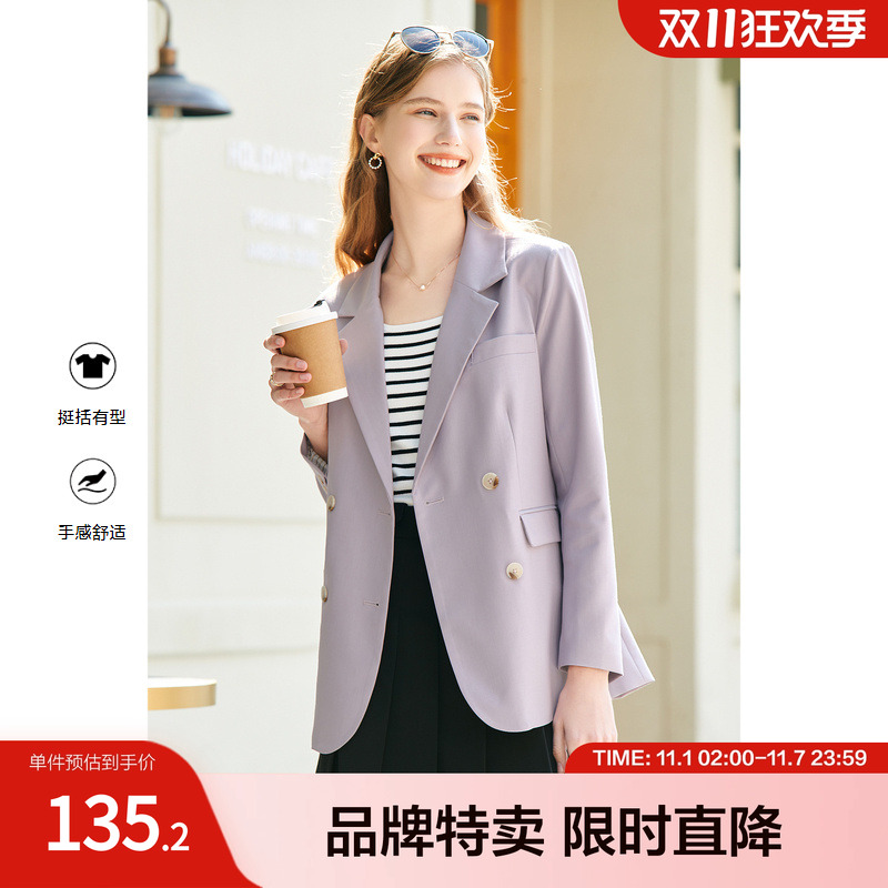 首降3折|歌莉娅双排扣外套女士2025春季新款通勤小个子短款西装