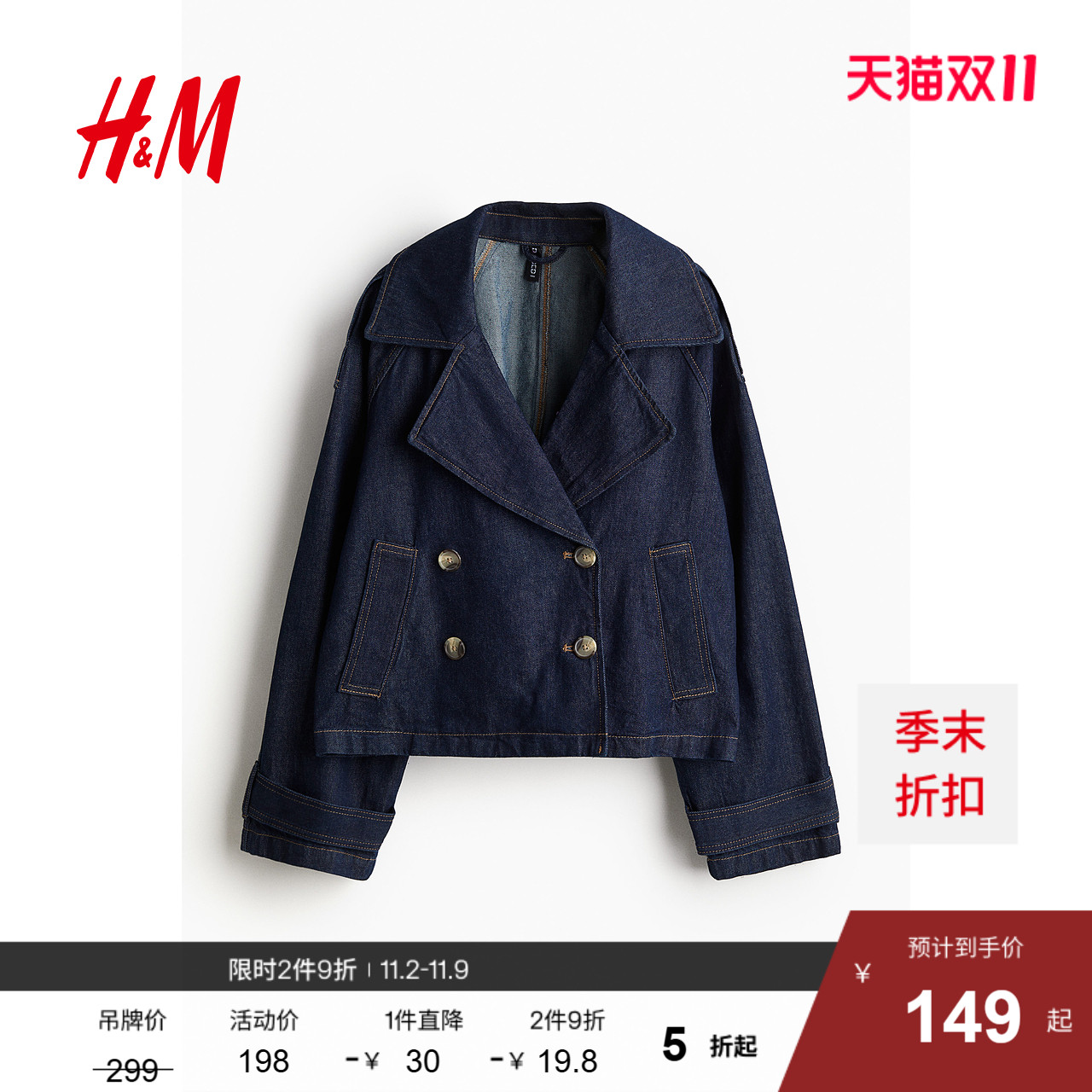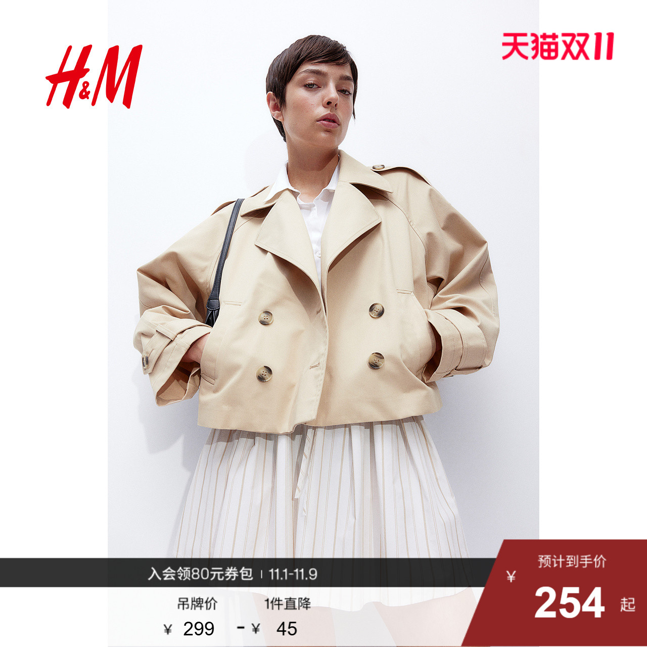 HM女装短外套秋季欧若风穿搭休闲双排扣大廓形长袖短风衣1250175