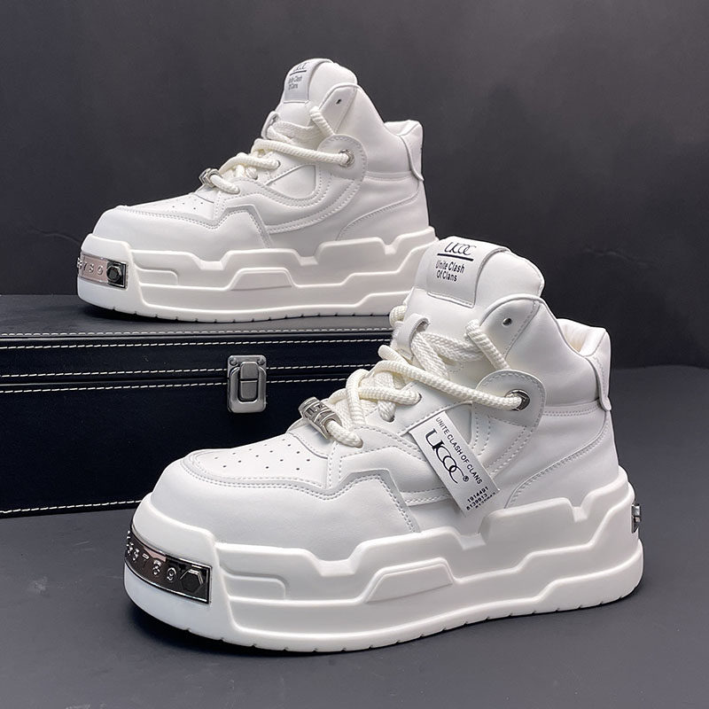白色高帮鞋男冬季新款内增高马丁靴个性韩版中帮短靴休闲运动板鞋