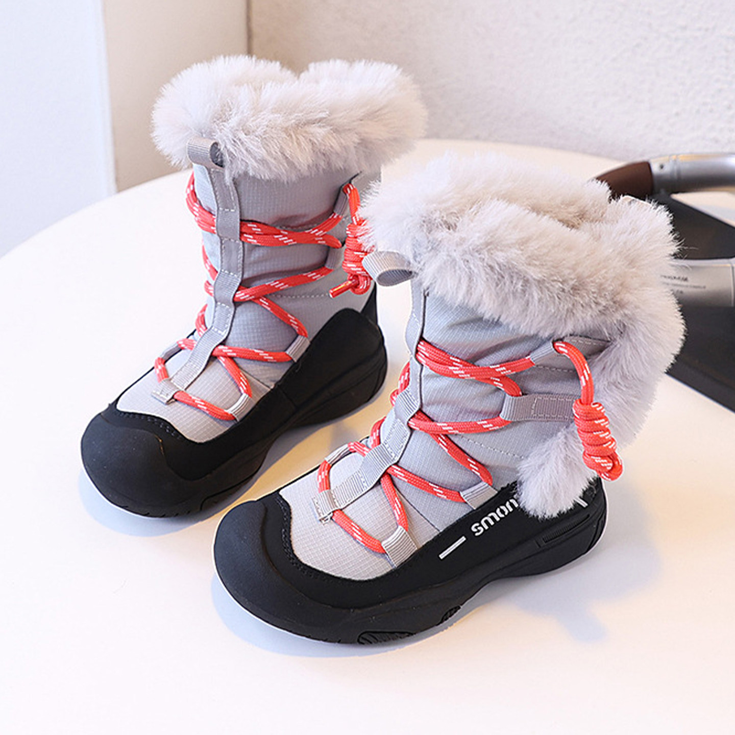 防水户外东北儿童雪地靴加绒加厚男女童中筒高帮棉靴冬季抗寒保暖