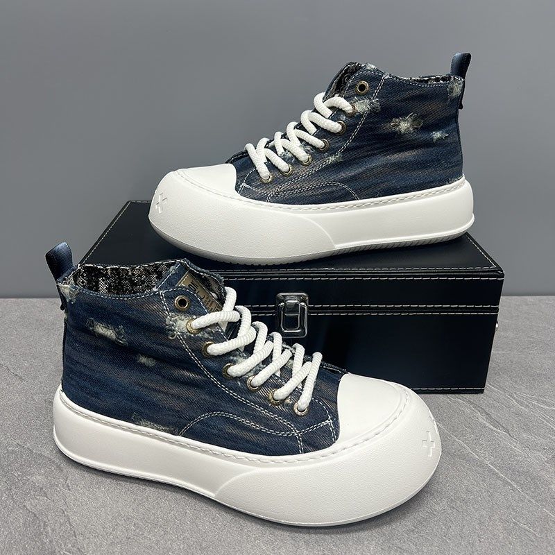 个性高帮鞋男2023新款秋季小众鞋男士厚底增高布面高帮鞋潮流短靴