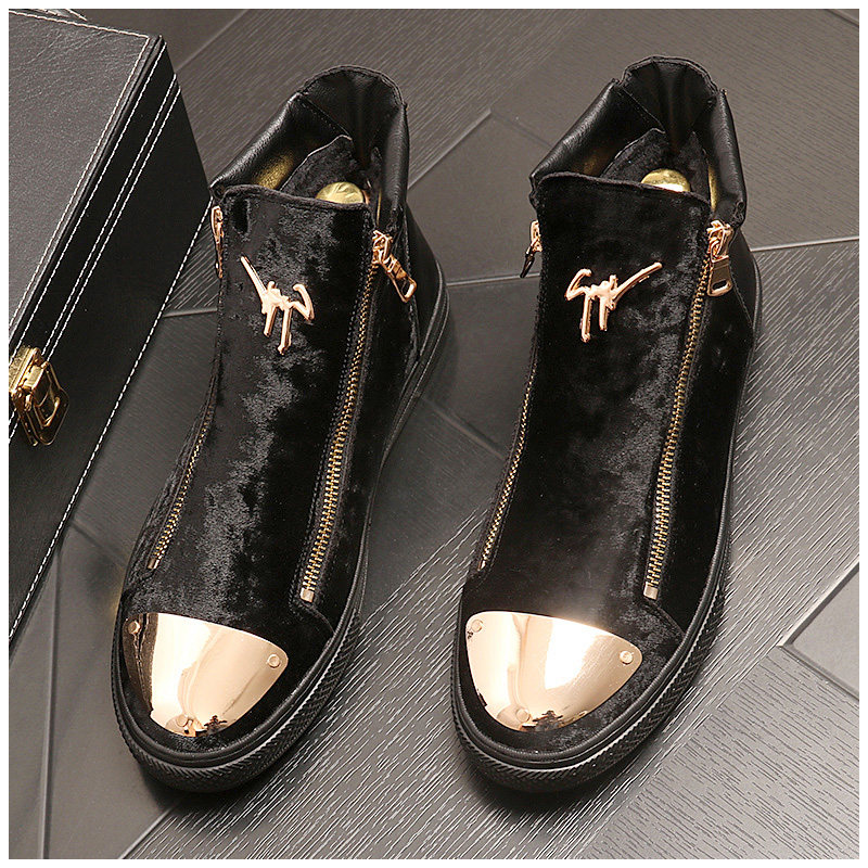 2025春季新款高帮鞋男士个性拉链马丁靴鞋青年时尚潮流休闲烫钻鞋