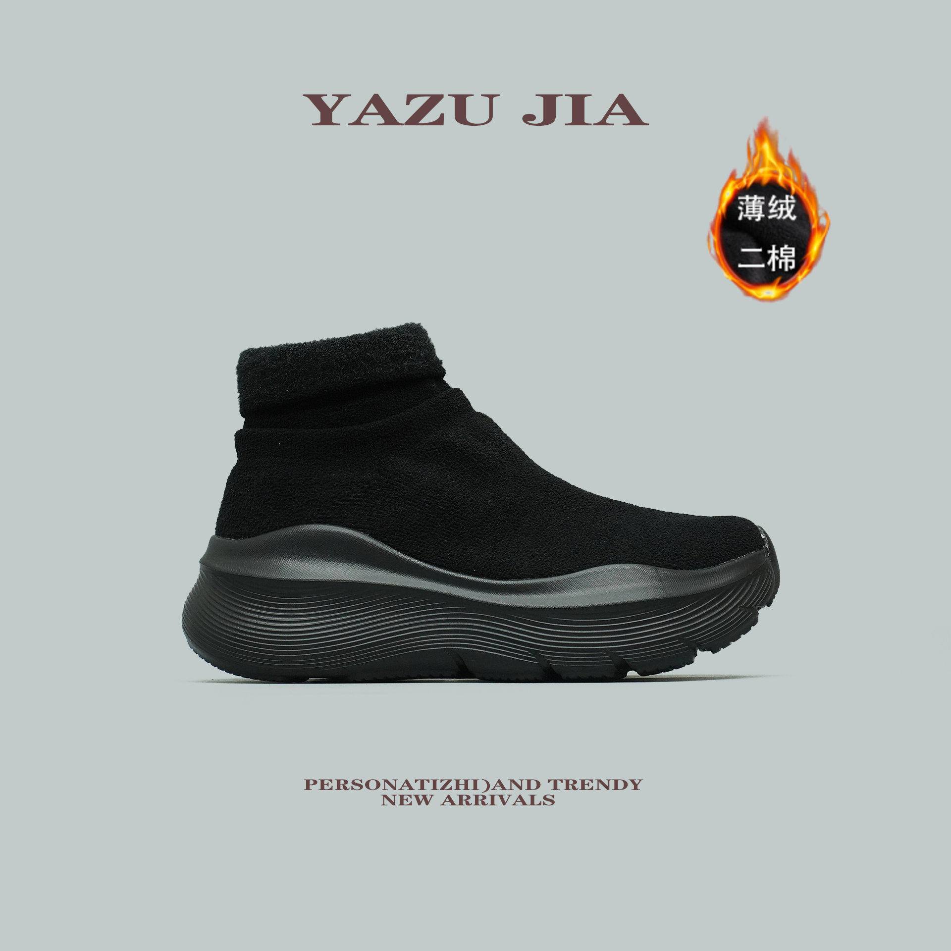【个性高帮】秋冬弹力束脚鞋口一脚蹬袜子鞋男女呢绒布二棉休闲鞋