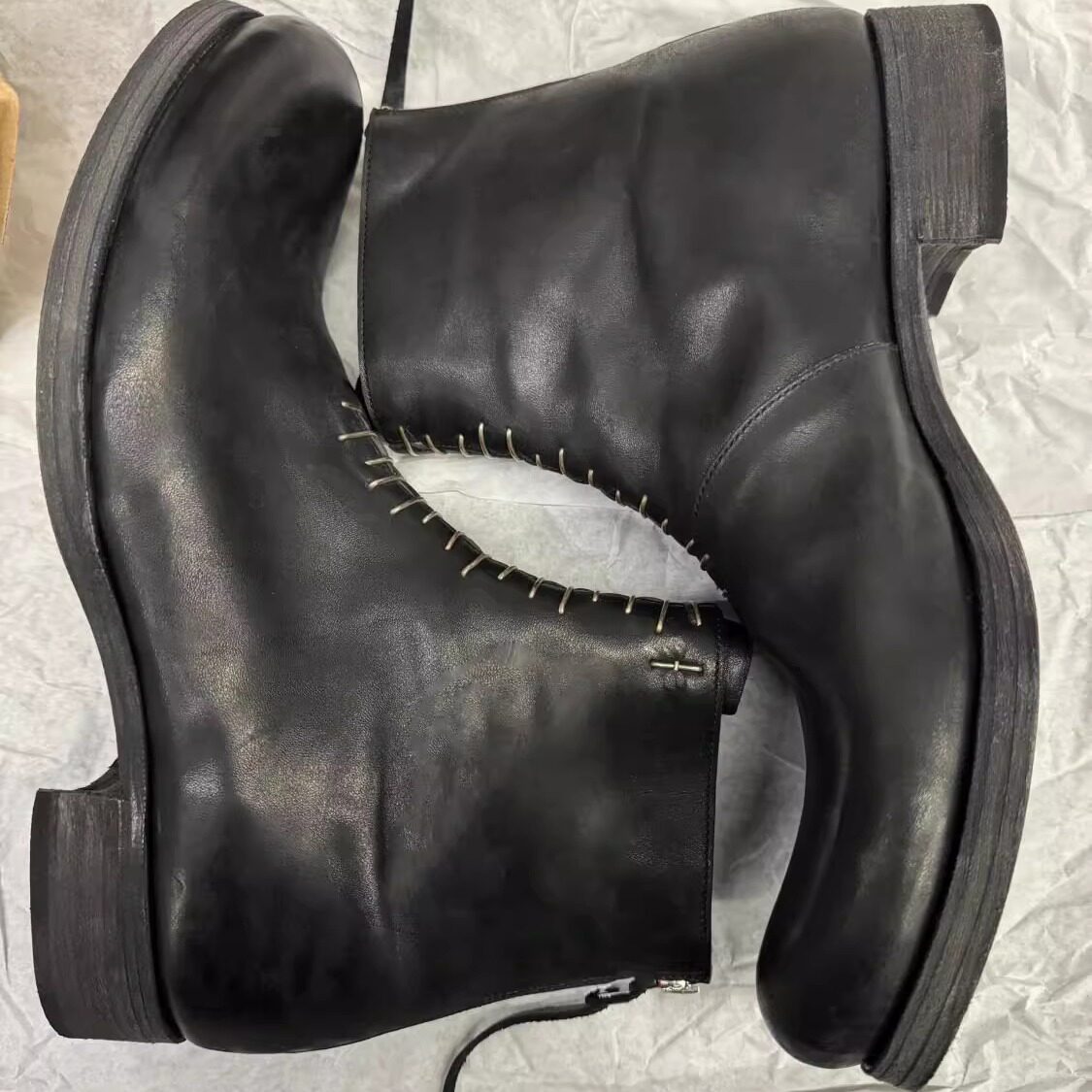 韩桥日记 韩版简约方头靴子拉链设计高帮皮鞋潮个性小众男士皮靴