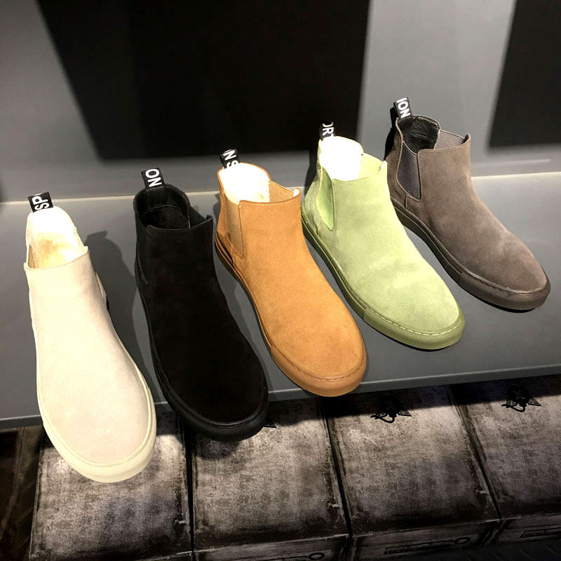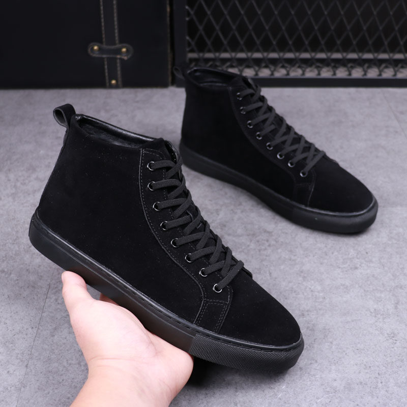 男鞋2025冬季加绒板鞋个性绒面短靴百搭高帮棉鞋运动休闲鞋子男
