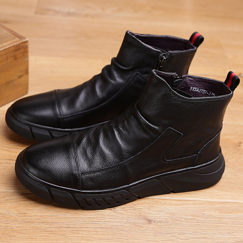 2024秋冬新款高帮加绒真皮短靴一脚蹬欧版个性潮流百搭休闲男鞋子