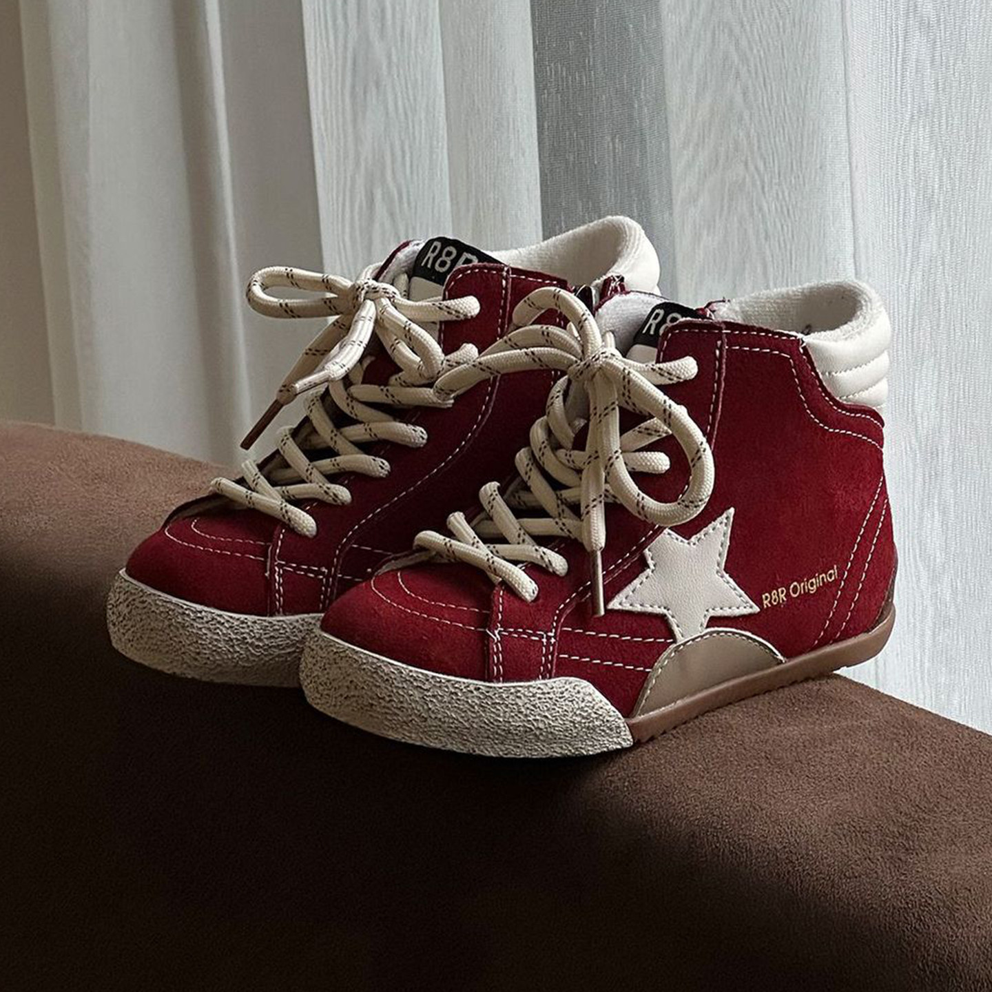 高帮星星做旧脏脏儿童板鞋男童运动鞋2025秋冬休闲加绒女童二棉鞋