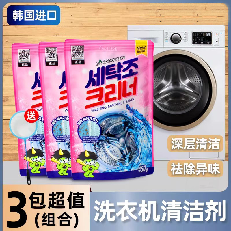 3袋 韩国进口波轮滚筒洗衣机槽清洗清洁剂杀菌除垢山小怪鬼精灵