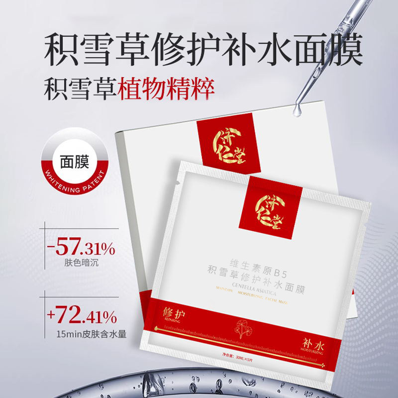 济仁堂积雪草修护补水面膜水润保湿提亮肤色改善暗沉肌肤缓解敏感