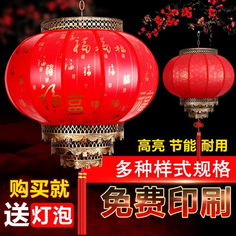 防水户外灯笼古典春节发光广告冬瓜新年大红中式铁口仿古羊皮灯笼