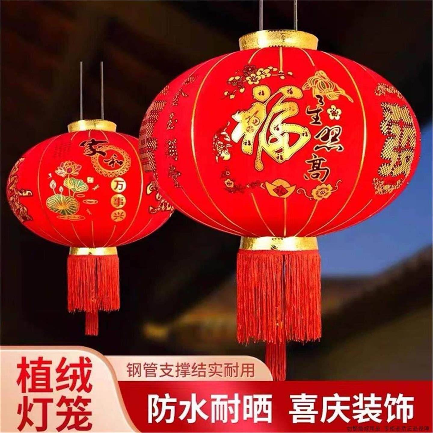 春节新年农村大门口红灯笼户外防水乔迁喜庆装饰阳台植绒灯笼挂饰