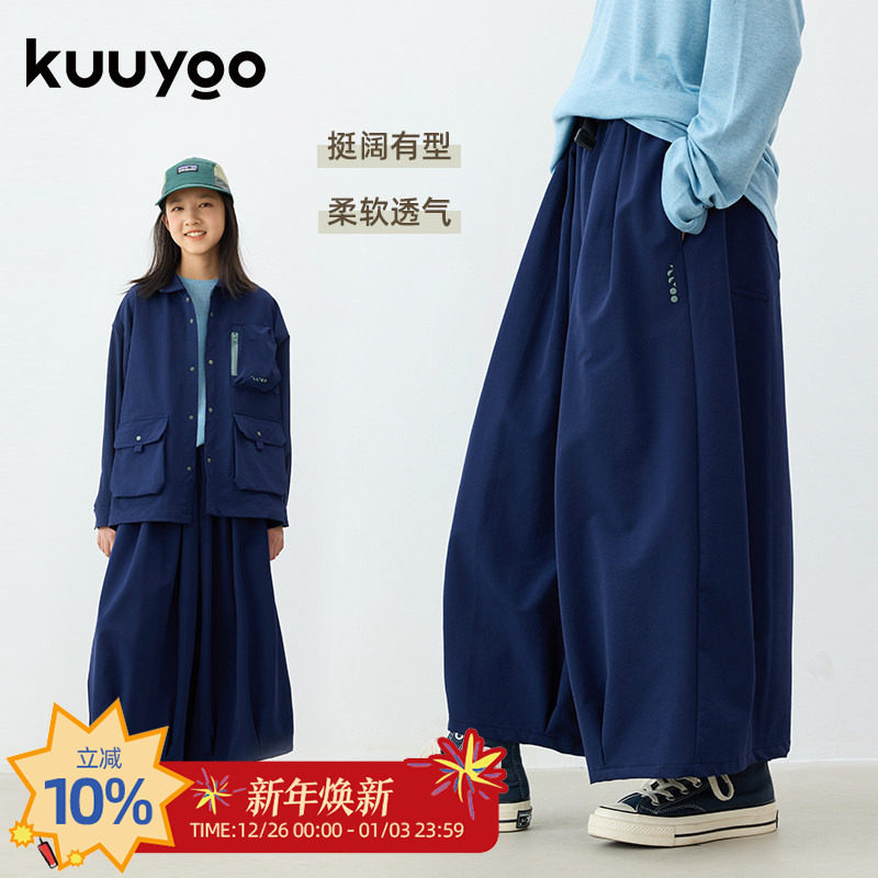 KUUYOO山系防水户外灯笼裙裤中大童秋季柔软宽松儿童休闲阔腿裙裤