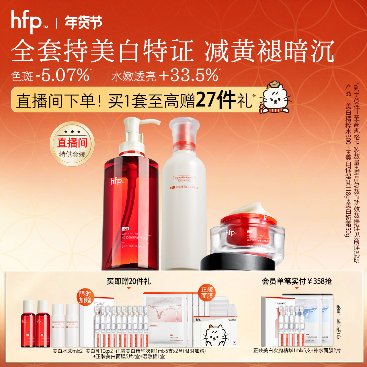 【主播推荐】hfp美白提亮套装 VC精华水湿敷补水烟酰胺乳液去黄