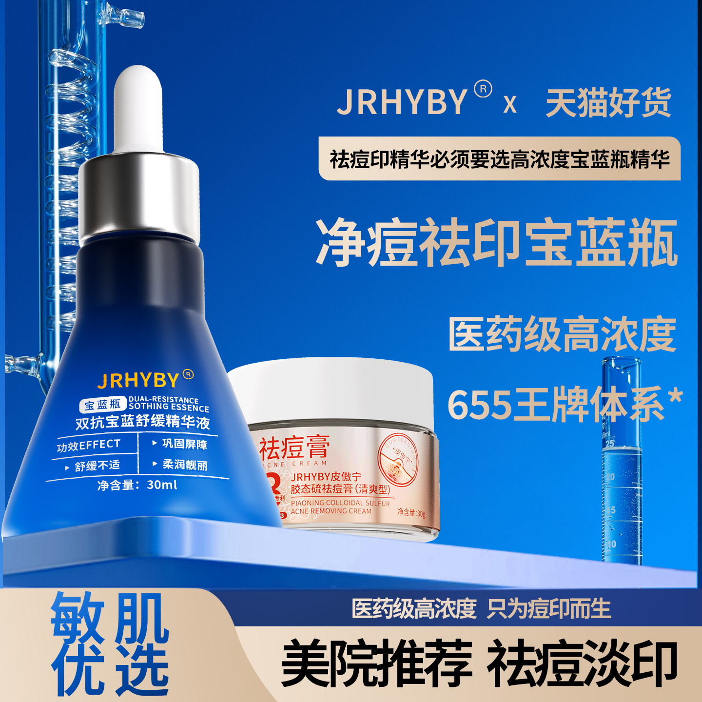 JRHYBY皮傲宁胶态硫淡化痘印淡宝蓝瓶精华液套装粉刺舒缓男女通用