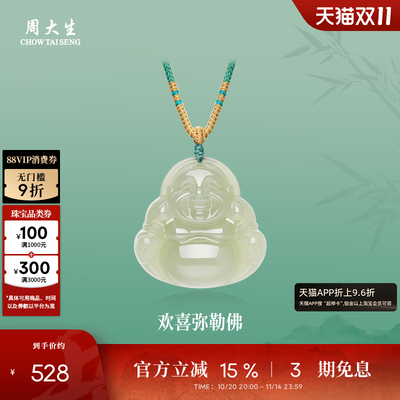周大生天然和田玉佛公项链女平安佛挂坠吊坠生日礼物送女朋友高级