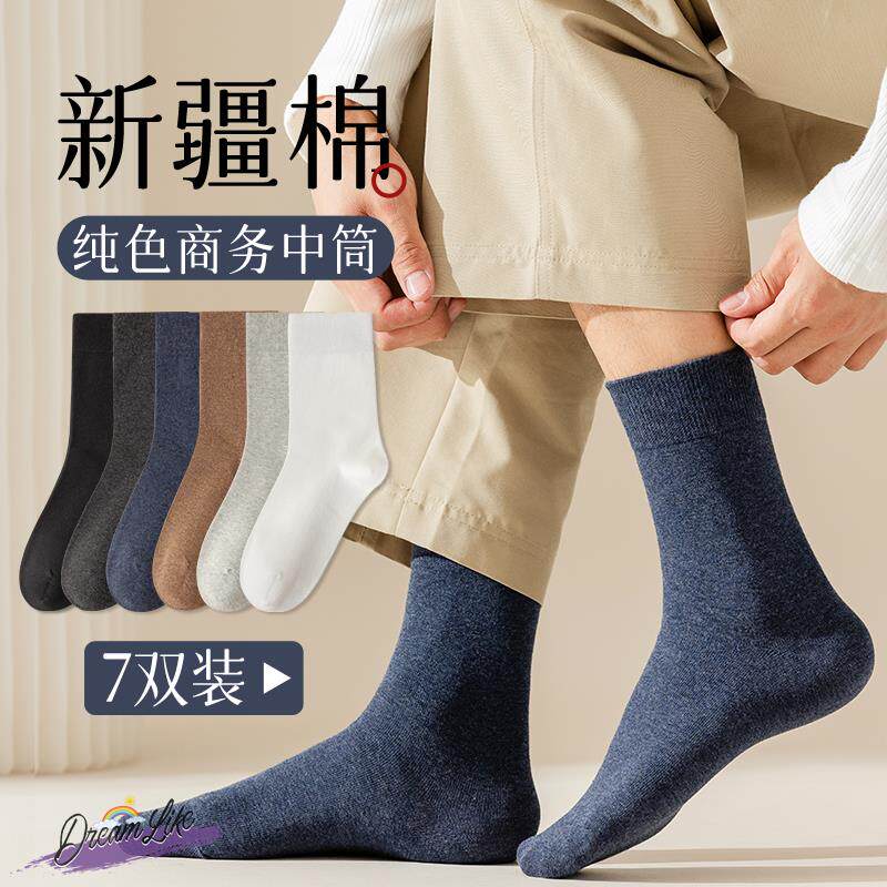 速发袜袜男士中筒春秋款黑色防臭吸汗纯色长筒男子全长棉袜冬季wz