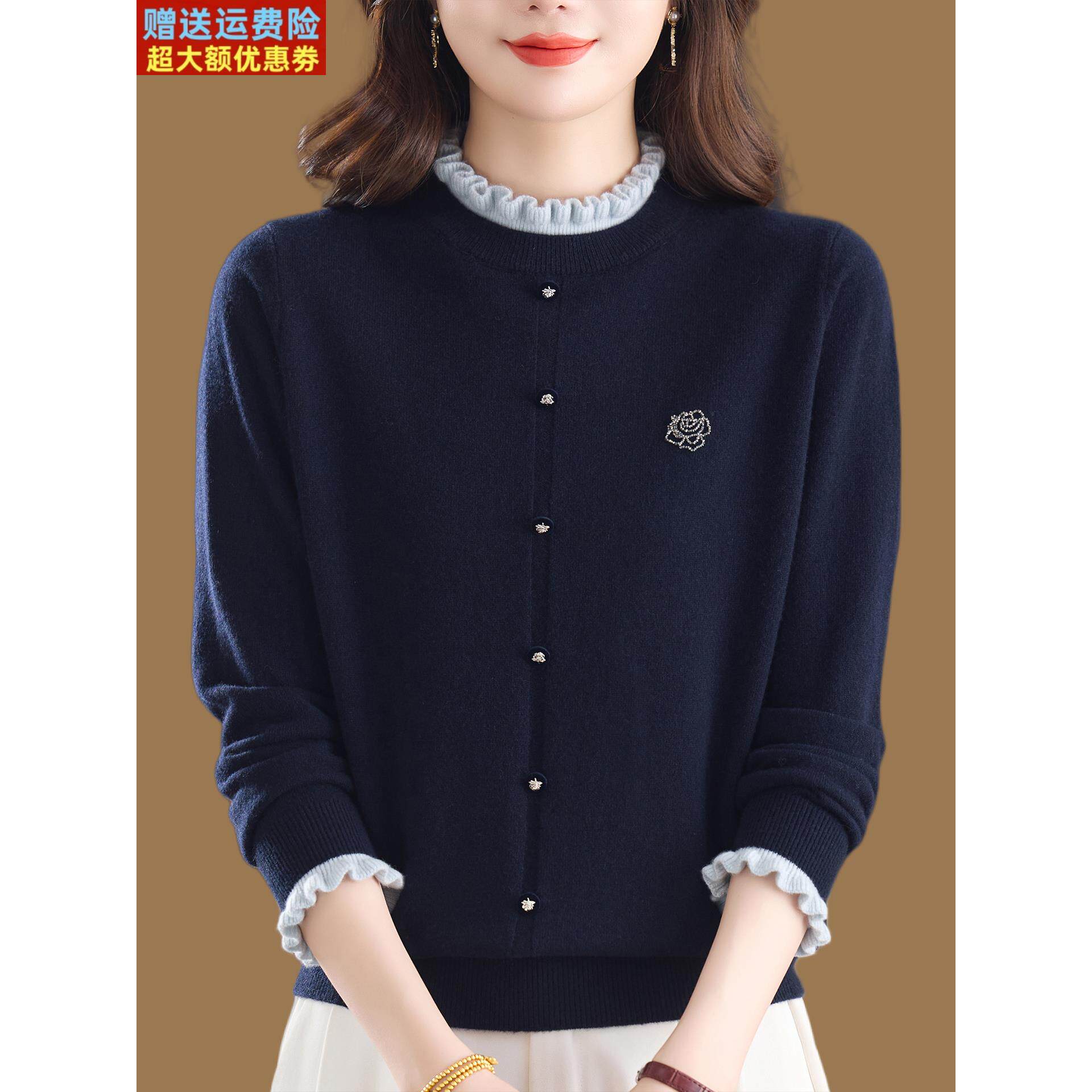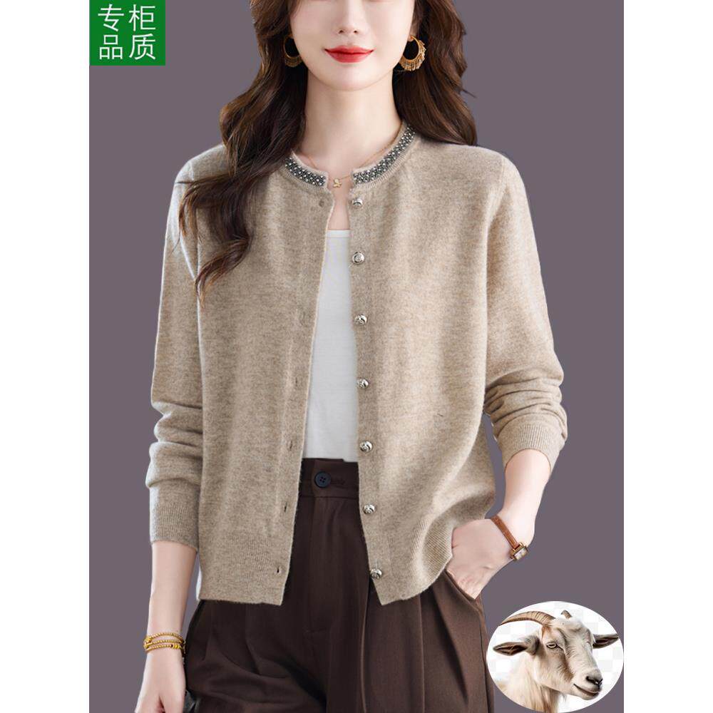 鄂尔多斯市羊绒衫100纯羊毛针织开衫女秋冬妈妈毛衣外套2025新款