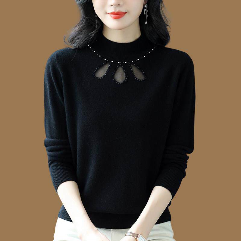 鄂尔多斯市高领打底衫女2023年春秋冬内搭黑色毛衣洋气百搭羊绒衫